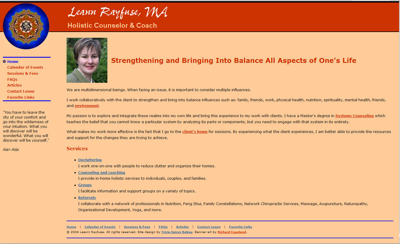 Purpose: Market the services of Leann Rayfuse, holistic counselor and coach, with a website that she could update herself.