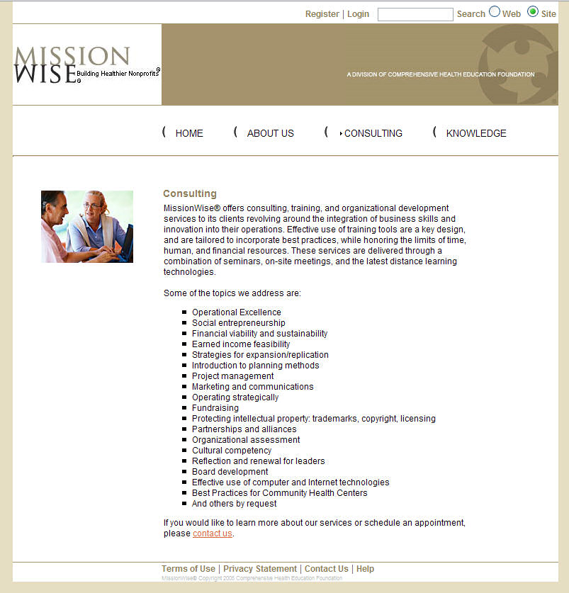 My Contribution: I worked closely with principals to determine their audience and message, wrote most of the copy, edited the work of others, and made edits in the DotNetNuke content management system. I also wrote online help for the members-only features.