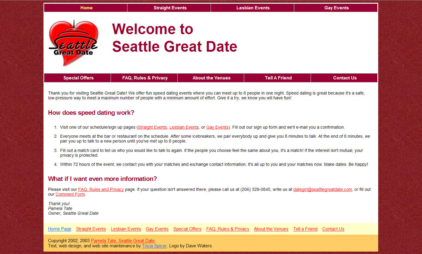 - Seattle Great Date (Writing, Web Design, HTML, & CSS Sample)